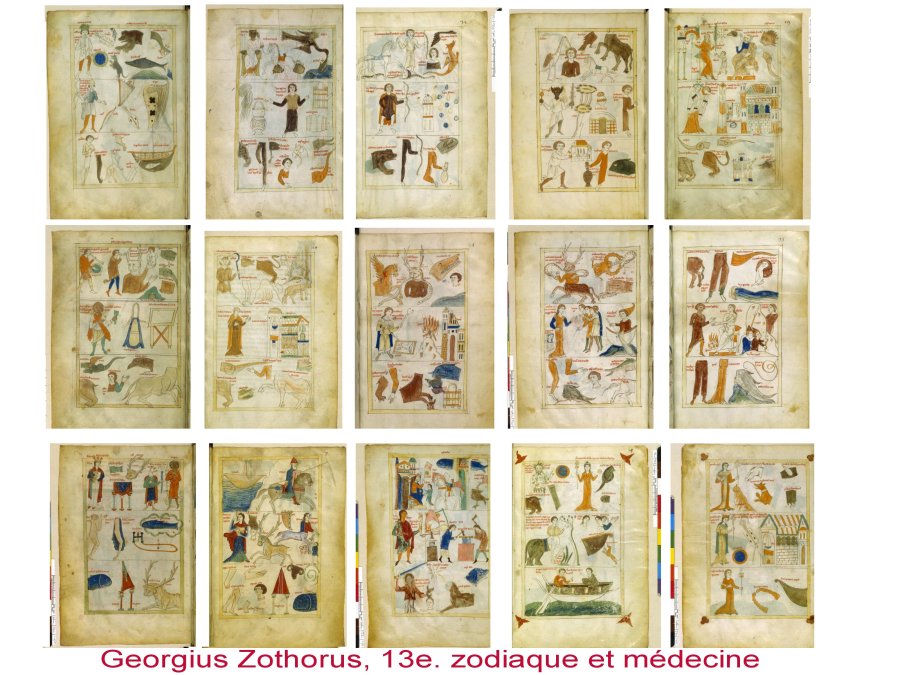Un très court extrait de traités d’astrologie, concernant les affections diverse, physiques, psychiqueset comportementales, en fonction des sugnes du zodiaque. Exploration détaillées usr des dizaines de feuillets selon la tradition antique de » l’homme zodiacal ». Idée de macrocosme et microcosme, l’humai comme écho de l’univer.