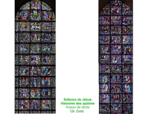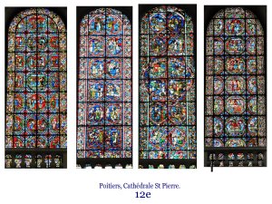 La grande verrière de Tours, ensemble de grande cohérence. On repmarque la continuité incroyable des principes guidant les constructeurs et maîtres verriers. les principes non écrits sont cependant d’une clarté manifeste.