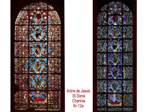 Un nouvel esprit s’impose. La figure de Marie, domine alors la généalogie. le mythe des arbres de Jessé ( ici St Denis et la copie de Chartres) en sont l’affirmation. La figure de la mère à l’enfant remplace la mort du fils. Validation des généalogies. Modèle pour les familles royales.
