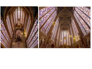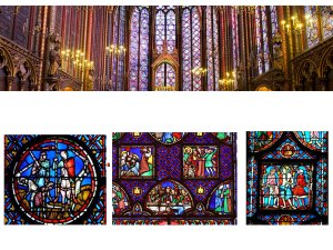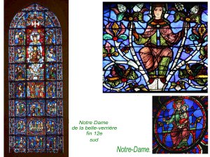 Le chef d’oeuvre absolu de l’art du vitrail est sans contextation, la Ste Chapelle royale de Paris. Châsse à reliques majeures. C’est l’aboutissement des techniques et des principes de disparition de la pesanteur au bénéfice de la lumière.