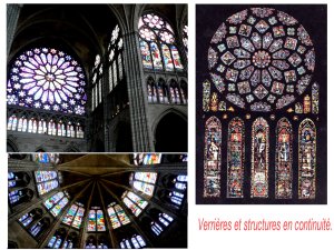 Ce document montre clairement l’intégration parfaite de la structure intérieure du vitrail à la structure architecturale. l’art gothique est aussi un art de la révélation. Tout est visble, compréhensible. c’est une structure qui fait appel à l’analyse et à la rationalité, et qui glisse jusqu’au merveilleux.