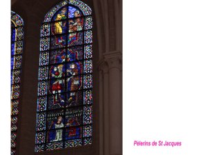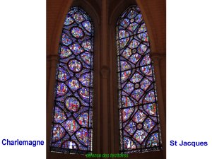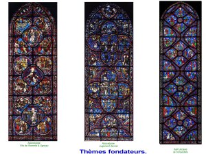 A Chartres, dasn les vitraux essentiels, on retrouve les fondamentaux de la reconquête catholique triomphante, sous les références à l’Apocalypse et au chemin de St Jacques ( voir article précédent).