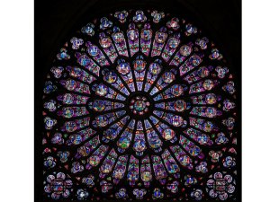 La splendide rosace de Paris. le cercle, solaire et floral est aussi assimilable à l’Iris et au regard. l’un des sens les plus stimulés dans l’architecture gothique, puisque les vitraux sont des signaux envoyés directement aux pouvoir de la vision. Jouant sur la persistance rétienne, le contre-jour et les limites de la distinction des formes.
