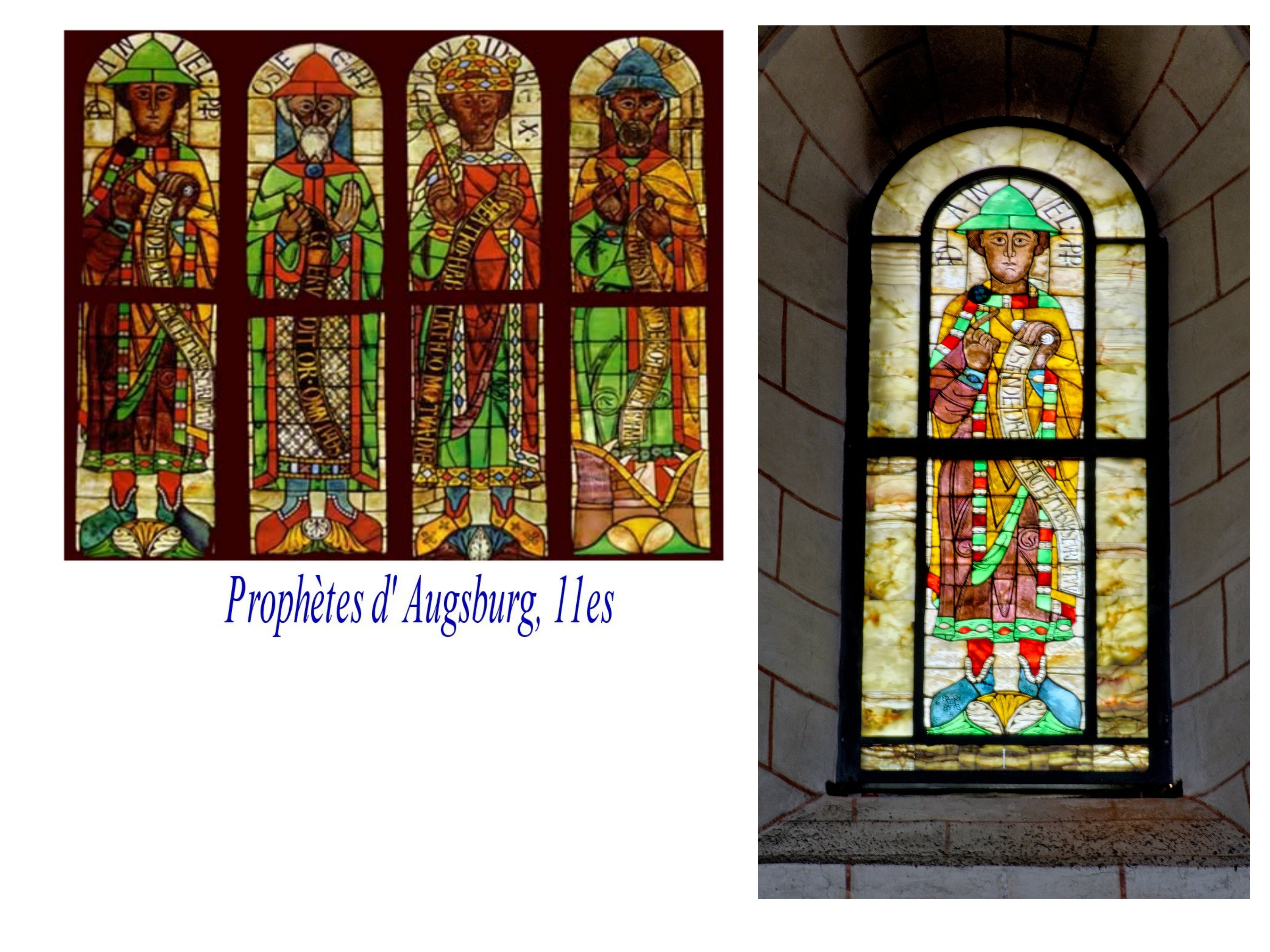 Il est dit que les premiers vitraux seraient ceux d’Augsburg? translucifité de l ‘albâtre et verres plus épais. Figures grandes et lisibles.