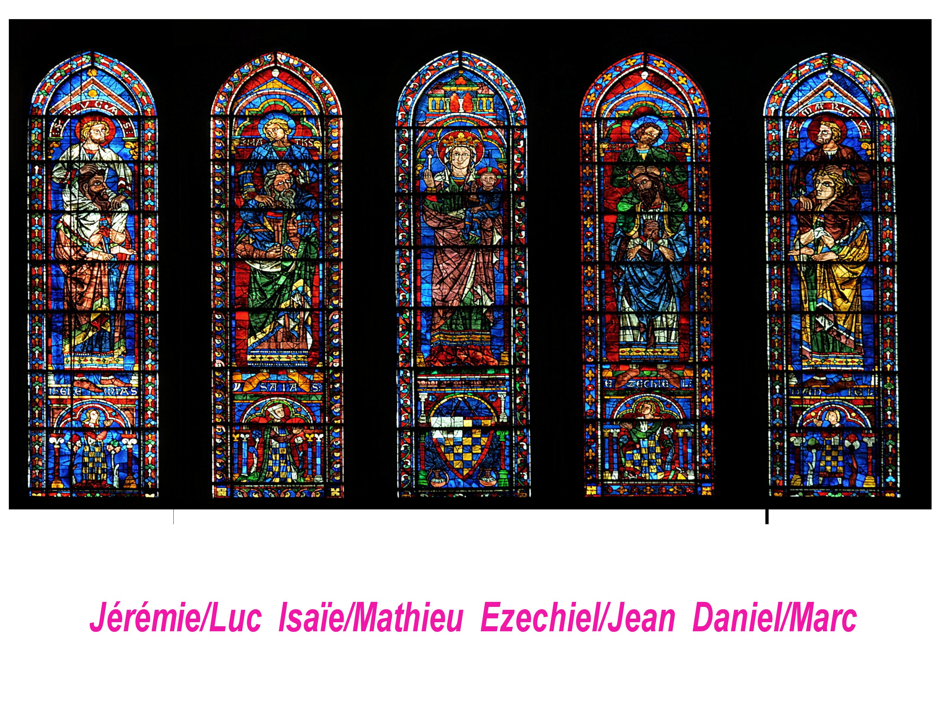 Ici encore autour de Notre Dame, des prophètes associés aux évangélistes. Continuité de l’ancien et du nouveau testament.