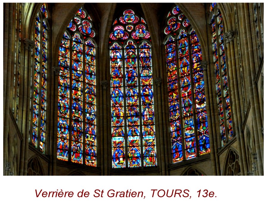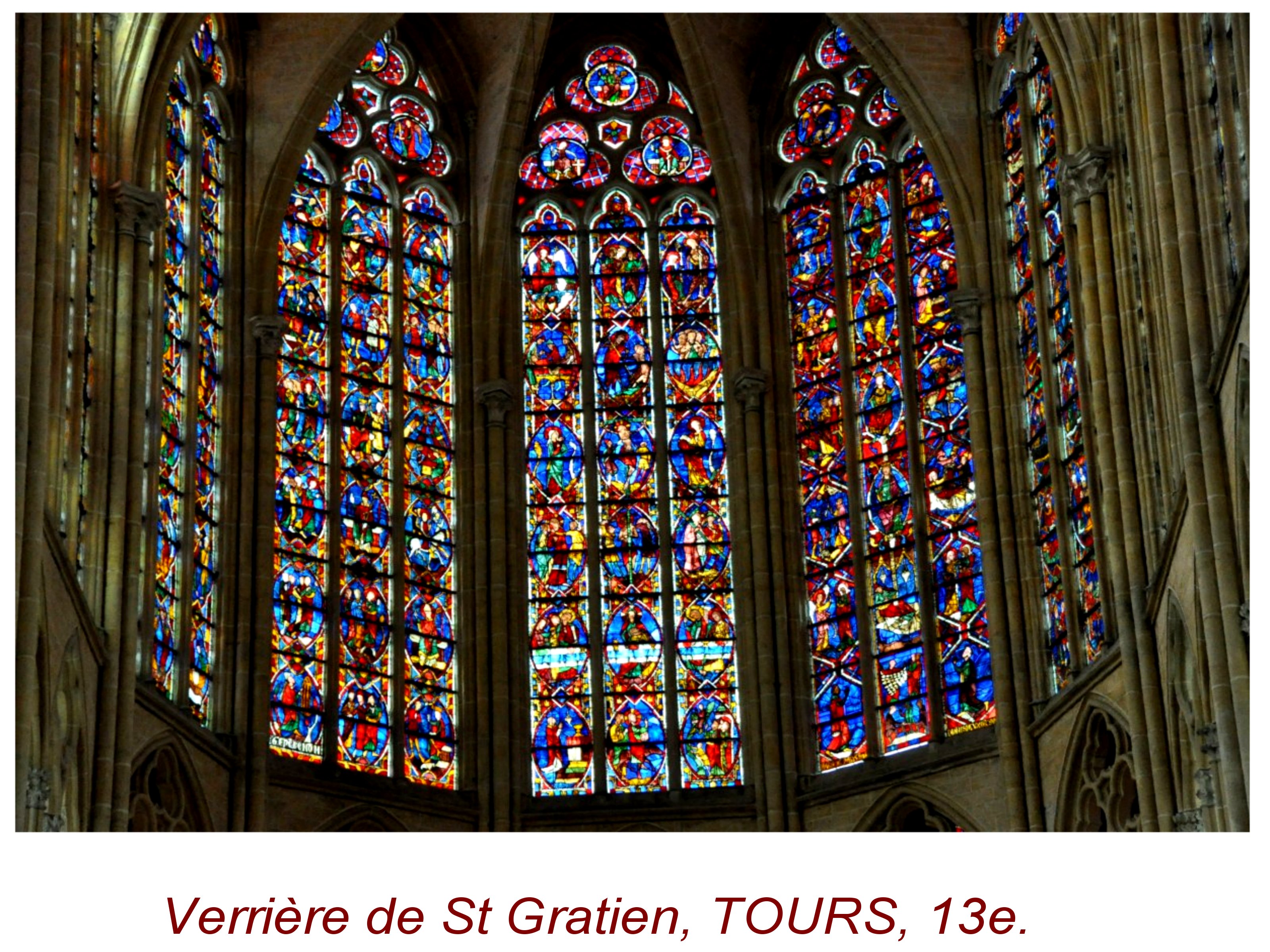 La grande verrière de Tours, ensemble de grande cohérence. On repmarque la continuité incroyable des principes guidant les constructeurs et maîtres verriers. les principes non écrits sont cependant d’une clarté manifeste.
