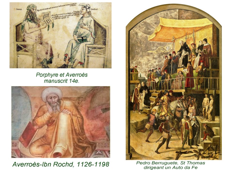 Les figures paradoxales, d’un côté dialogue avec Averroès qutour de la question de la raison, mais de l’autre, une oeuvre terrifiante, montrant Thomas parrainant un autodafé cruel dans l’ Espagne de la Reconquista..