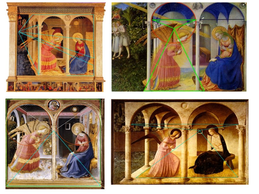 A l’opposé pourrait-on dire de Bosch, Fra Angelico propose une perspective lisible et un cadre portif et mystique à la venue sur terre d’un sauveur.