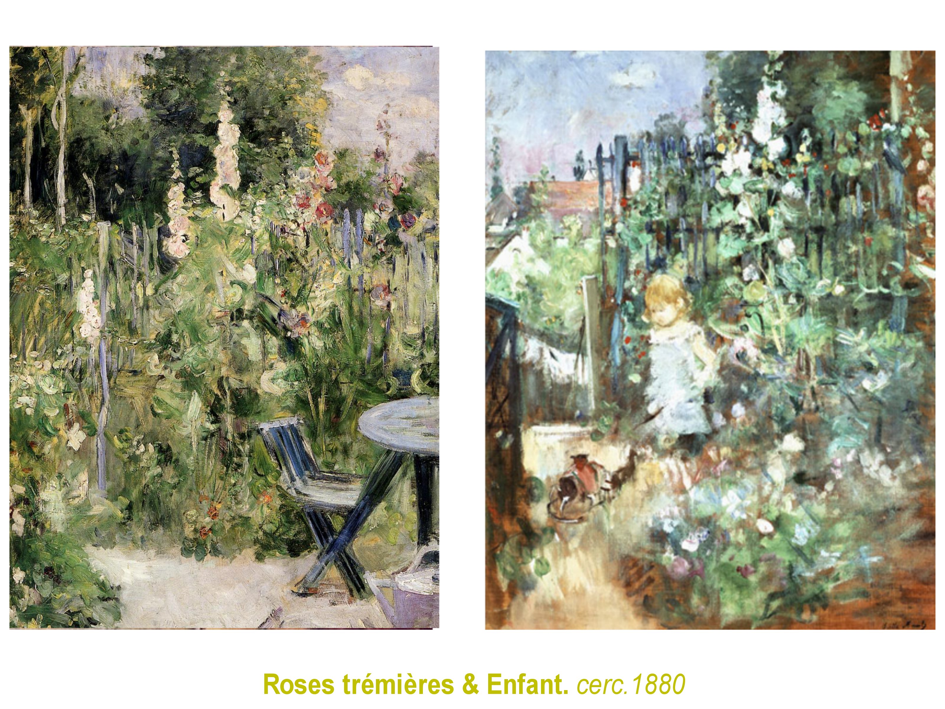 Avec ces 2 peintures de roses trémières, BertheMorisot travaille des touches plus larges, une peinture assez épaisse et plus gestuelles.