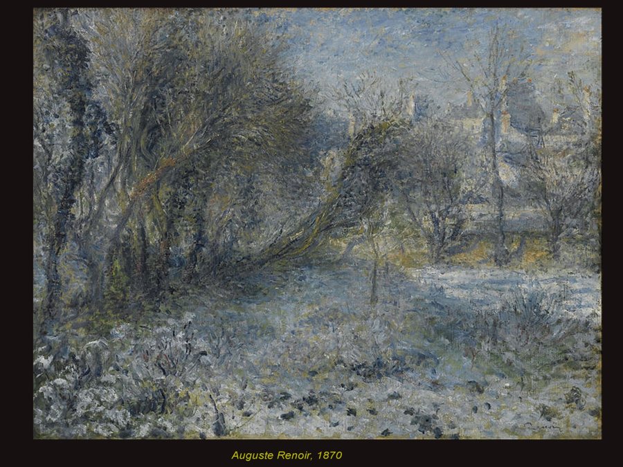 Renoir se retrouve avec ses touches en points généreux et souvent bleus. AInsi, ce défi pictural, permet encore à chaque artiste de se singulariser, tout en étant dans une démarche commune.