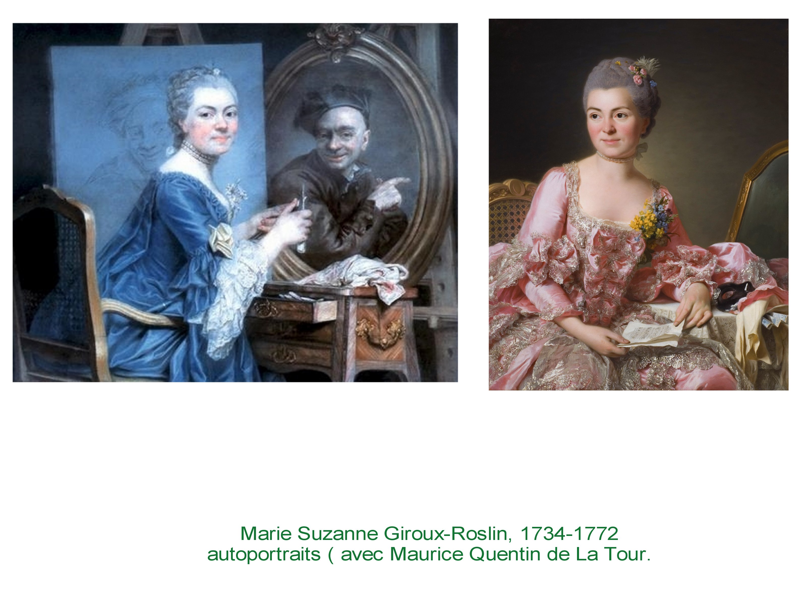 A la suite de Rosalba Carriera, on voit apparaître de grandes artistes femmes. Souvent cantonnées cependant à l’art du portrait, dans l’entourage du très moderne M. Quentin DelaTour.
