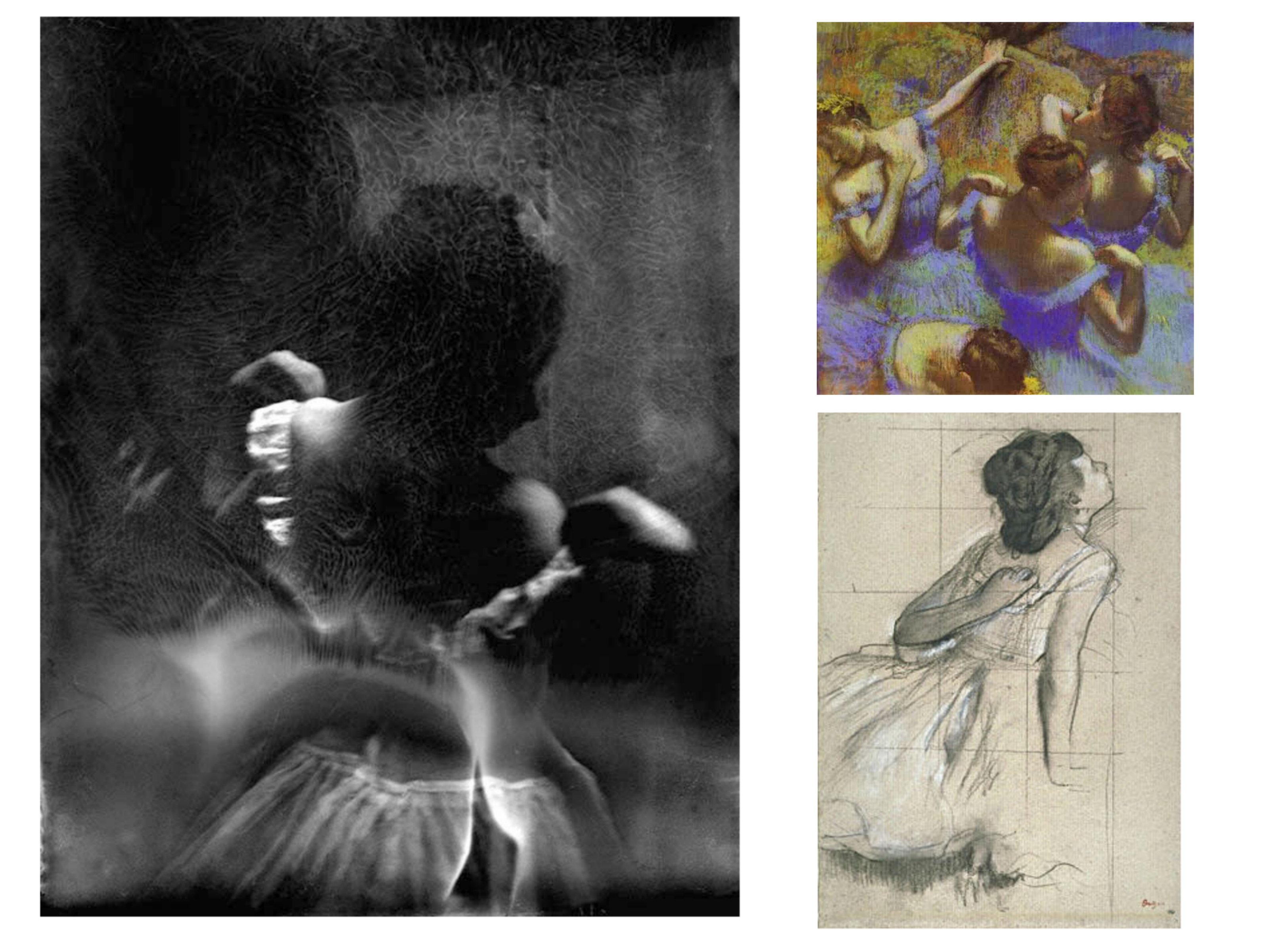Il est intéressant de voir que si la dimension gestuelle de son trait ( qui inspire à Valéry le titre « Degas, Danse, Dessin » est cruciale pour l’artiste, il est aussi capable d’utiliser cette technique récente, qui ne laisse pourtant ni trace, ni zones vierges. La photographie possède surtout, cette puissance sidérante et fascinante de capture d’un moment de vérité lumineuse. Degas opère une véritable rencontre au sommet de ces productions d’images.