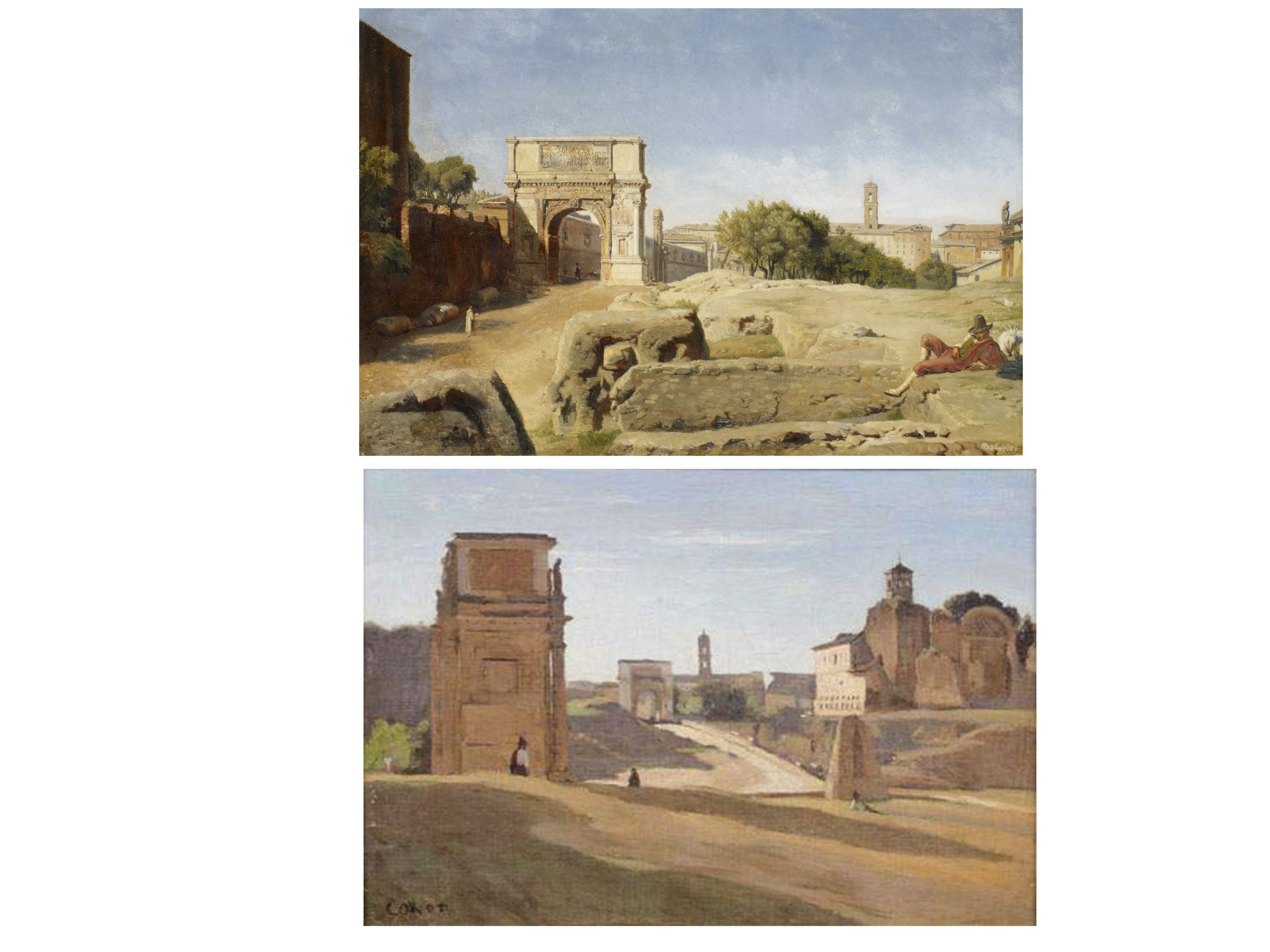 Non seulement détours, mais plus encore voyages à pied, jusqu’en Italie ; mais plus parfois que le but, c’est l’itinéraire que Corot semble mettre en scène.