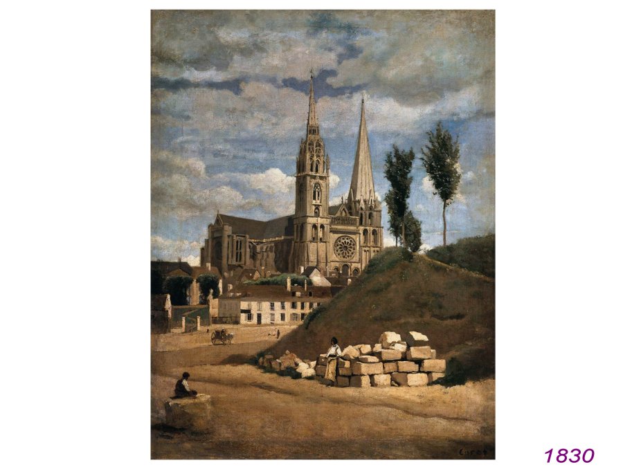 Hameaux, moulins, et mêm la cathédrale de Chartres..comme halte promise. Corot démontre la grande subtilité de ses tons et couleurs aténués.