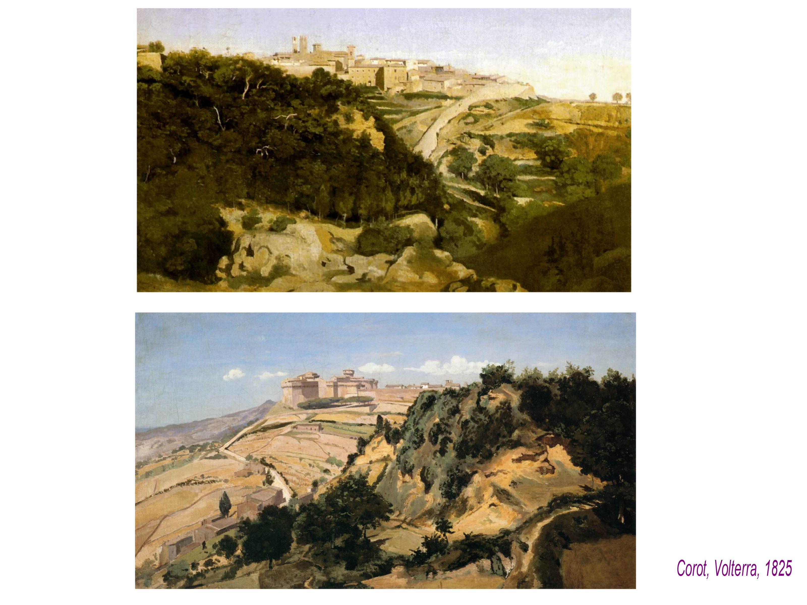 Volterra au loin. Arrêt dans les collines de Toscane. Plaisir de la vision pure, de la tension.