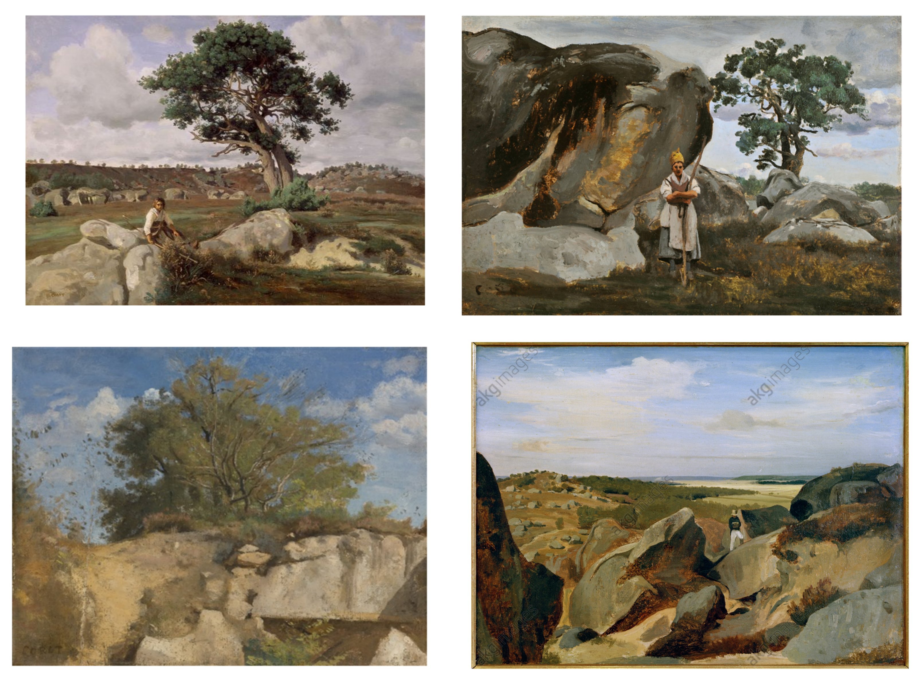 En ce temps, la « forêt » est soivent une lande aux graminées fauves sur les latières. La hauteur de ces espaces, permet une vision très lointaine, traduite par les remarquables dégtadés atmosphériues. Les roches monumentales, remplacent aussi les architectures désirées d’ Italie.