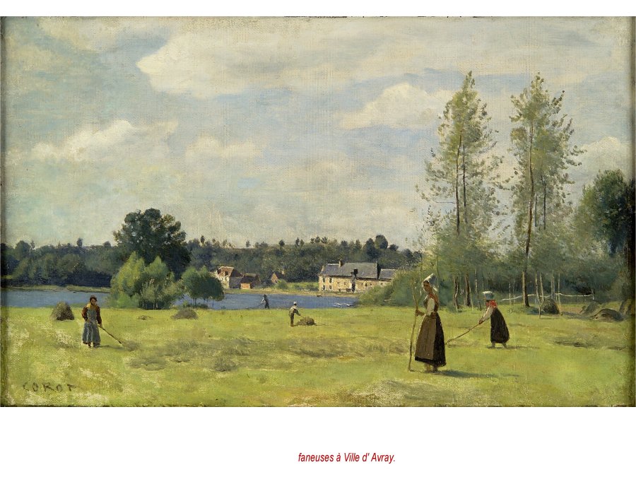 Corot est en mesure de saisir un instant bref, comme dans cette oeuvre, ou les faneuses, semblent surprises. Un effet qui rapproche cette vision de la photographie naissante. La brièveté de l’instant est cohérente avec l’art de Corot, celui de l’esquisse, de l’ébauche.