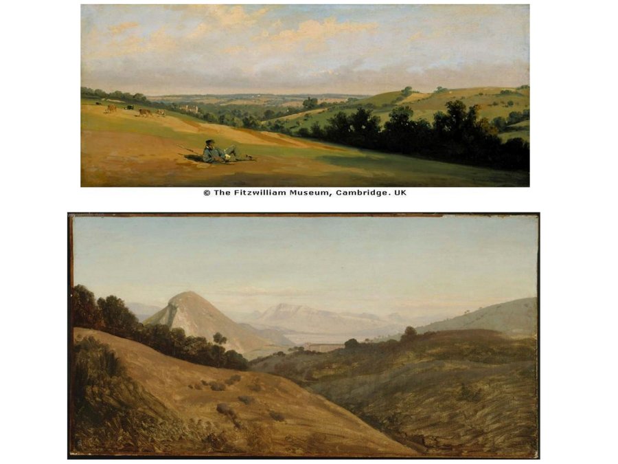 Caruelle d’ Aligny encore, qui semble rivaliser d’audace avec des paysages minimalistes, espaces totalement ouverts et dégagés, tout en nuances et dégradés atmosphériques. Loin des scènes et topographies spectaculaires.