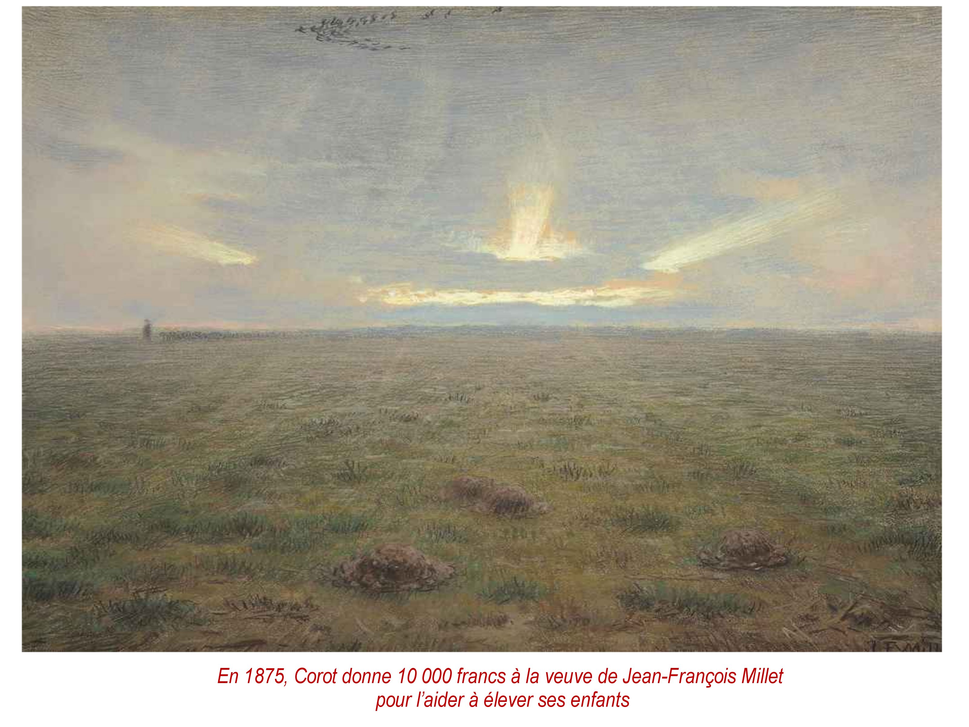 Ainsi, il suffit de savoir contempler et saisir des instants de grâce. Ce que fait systématiquement le peintre. Le slumières rasantes exaltent d’ailleurs le moindre relief ; les mottes de terre, devenant des phénomènes pittoresques.