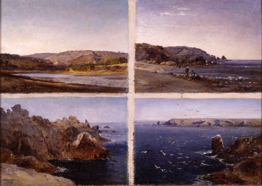 Quelques artistes sont notables, tels Jules Noël, 1859, peintre de marine et de scènes assez académiques, mais qui dans ses ébauches révème une vision proche de Corot et saisissant de façon très juste la lumière des côtes bretonnes.
