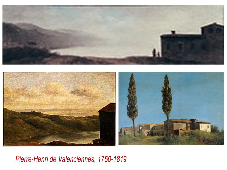 Pierre-Henri de Valenciennes invente aussi les séries. Tourne le dos à l’acadéisme, au romantisme à toute école. Il semble tourner le dos à tous et à toutes et ne diriger son regard que vers les cieux. ce que fait Corot en cheminant à sa façon.