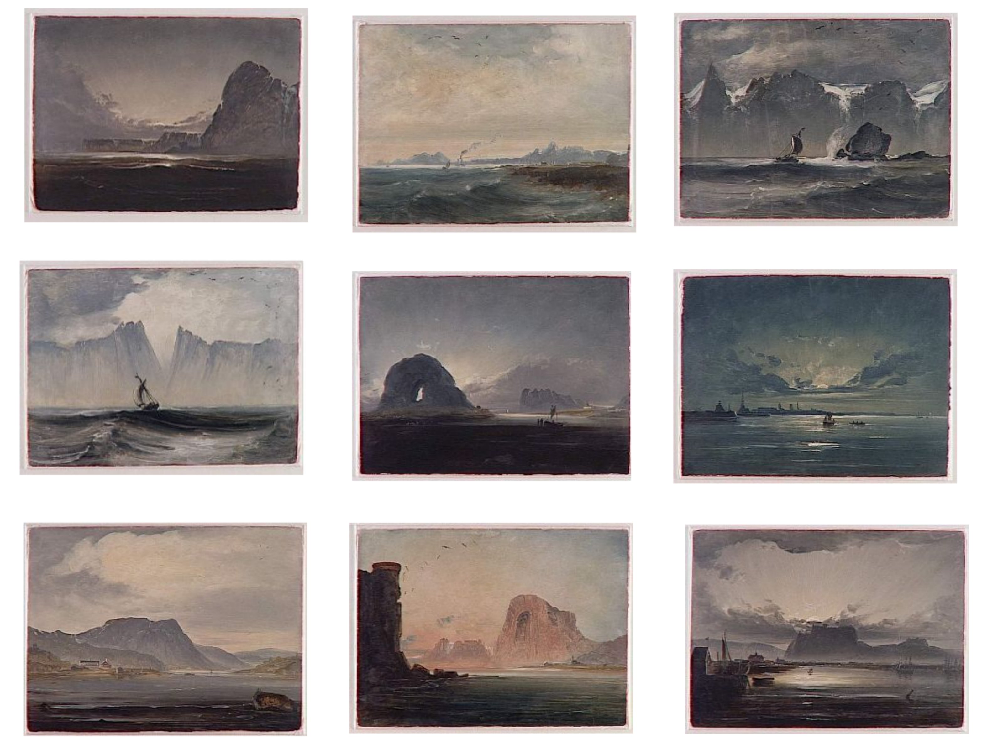 Un autre artiste méconnu actuellement, est Balke, qui accompagnant la reine, dans une navigation vers le nord, rapporte comme un carnet de voyage, témoignat de lumières et de paysages spécifiques. Phénomènes spectaculaires, aux tonaiités opposées aux tons chauds et apaisant de l’Italie et aux verdures françaises.
