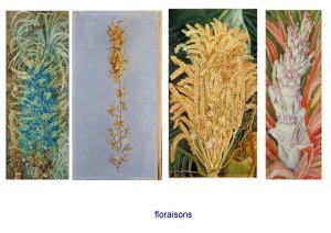 Ces peintures sont d’une grande justesse du point de vue botanique, et il est dit qu’elle les a toutes peintes « in situ », sans les déplanter!! Travail de série, travail sur le motif.