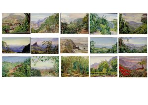 - Nous avons quelques vues de paysages, éloignés de la série sur la végétation, qui semblent être comme des cartes postales et des souvenirs de cadres enchantés. Marianne North ayant passé un grand nombre d’années sur différents continents, o conçoit parfaitement sa volonté de garder quelques traces, empreintes d’une nostalgie à quitter ces lieux.