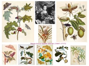 - Maria Anna Sybilla Merian, est aussi une entomologiste et elle associe systématiquement palnts et animaux. A la différence ( grande) de M. North, les éléments sont décontextés, ce qui oriente ces travaux vers l’illustration scientifique plus que la nature morte ou le paysage.