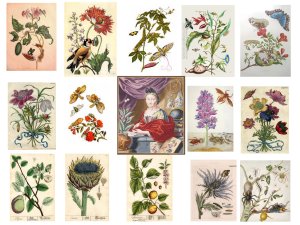 - La grande pionnière de ce genre est l’immense Sybille Merian, qui presque 2 siècles plus tôt réalise un travail colossal, profitant de l’essor de l’imprimerie pour diffuser ses études composées de plantes et d’animaux.