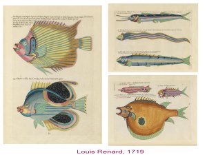 - Le 18e siècle est aussi un siècle de découvertes et de voyages scientifiques ; la frontière est ténue d’avec les récits d’aventures et les carnets de voyage, tiennent autant de l’enquête que du mythe ( inspirés parfois des « voyages d’ Alexandre », de Marco Polo etc..ce qui explique la sirène traitée avec le même sérieux que les poissons exotiques.