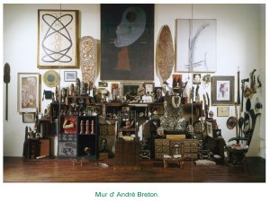 - C’est le côté merveilleux des rencontres hasardeuses que va retenir André Breton avec son cabinet de curiosité personnel, bureau et lieu de vie ; une partie a pu être transférée à Beaubourg, comme euvre totale.