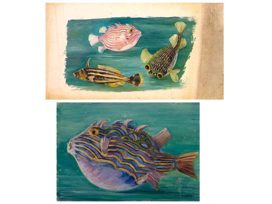 Voici 2 études de poissons..On regrette vivement de ne pas en avoir plus, tellement elles sont vives et virtuoses, que ce soit dans les couleurs comme dans le dessin et la touche.