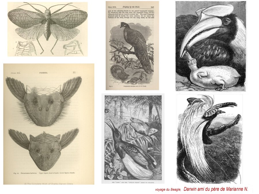 Les récits et observations de Darwin à bord du Beagle, seront aussi l’occasion pour de nombreux illustrateurs de diffuser ces planches naturalistes somptueuses, bien qu’en noir et blanc. Darin, ami du père de Marianne North aurait encouragé celle-ci à entreprendre ses voyages.,