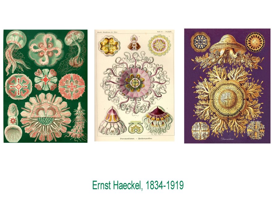 Un grand scientfique et dessinateur du monde sous-marin essentiellement est Haeckel, qui compose de véritables oeuvres, cpar ces plancjhes qui sont comme des hommages émerveillés à la diversité du vivant.