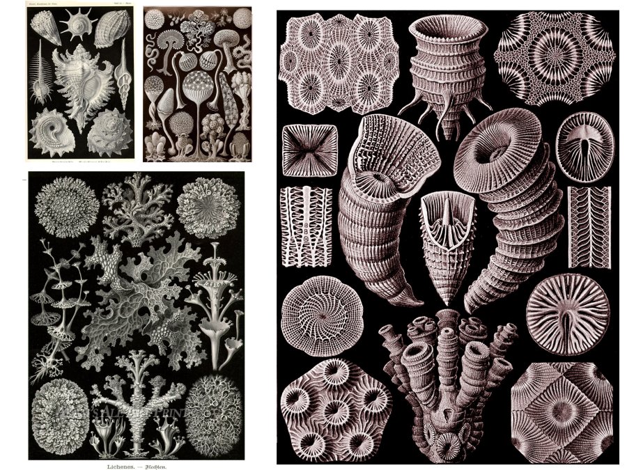Usant parfois d’un effet, comme négatif, qui souligne le côté cryptique de ces créatures sous-marines souvent. Véritables dentelles, il y a adéquation de la technique de gravure et le graphisme naturel des coquillages et coraux.
