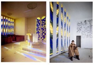 C’esy avec une grande cohérence, qu’il accepte la proposition de son ansien modèle, devenue religieuse, de décorer et concevoir une chapelle, bien que athée ( ce qui lui valut une plaisanterie de Picasso).Un espace de méfitation, hors du monde, baigné de lumière et apaisant.