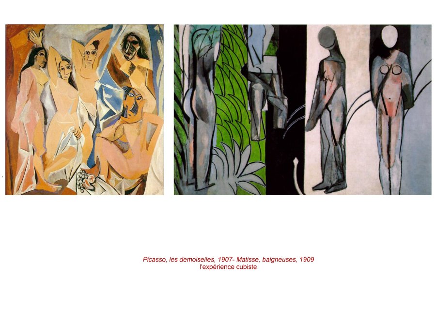 Matisse fait quelques détours du côté du cubisme, intéressé par l’épure formelle et la mise à plat des volumes et espaces. La force première des figures ainsi que l’universalisme éloigné de toute anecdote et narration , sont des notions qui lui parlent. Matisse et Picasso vont dialoguer pendant des décennies, comme en se répartissant la recherche..du côté des couleurs et des formes synthétiques pour Matisse, du côté des volumes et de la déconstruction chez Picasso.