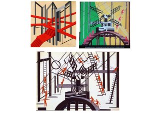 la virtuosité et la curiosité d’ Exter la portent vers des expériences décoratives et, elle poursuit son travail pour des décors de théâtre, des scénographies., se détachant assez facilement de la grammaire cubiste.