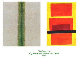 Olga Rozanova, est aussi une grande graveuse et développe une estgétique proche des courants expressionistes inaugurés par Kandinsky.