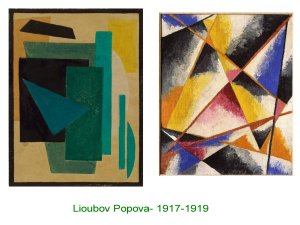 Elle témoigne d’une audace et d’une liberté extraordinaire. Liée aux courants constructivistes/futuristes. Ces artistes assimilent la théorie matérialiste-marxiste. En effet, il faut partir de la matérialité des composants plastiques ( surfaces-couleurs-matériaux) et aller vers le sens et non sumettre les moyens plastiques à des idées.
