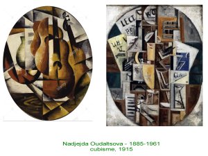 Lioubov Popova dont nous avons vu les décors constructivistes, démontre aussi une claire compréhension du cubisme, qui devient comme un passage oblgé pour se libérer de la tradition « mimétique » héritée de siècles de peinture et d’art occidental.