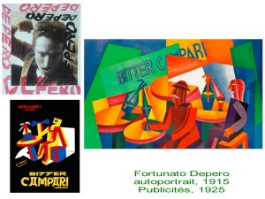 Fortunato Depero, artiste futuriste ( esprit comparable aux punks de 1977) se reconvertit avec brio dans la publicité et le graphisme dans la société italienne de l’entre 2 guerres.