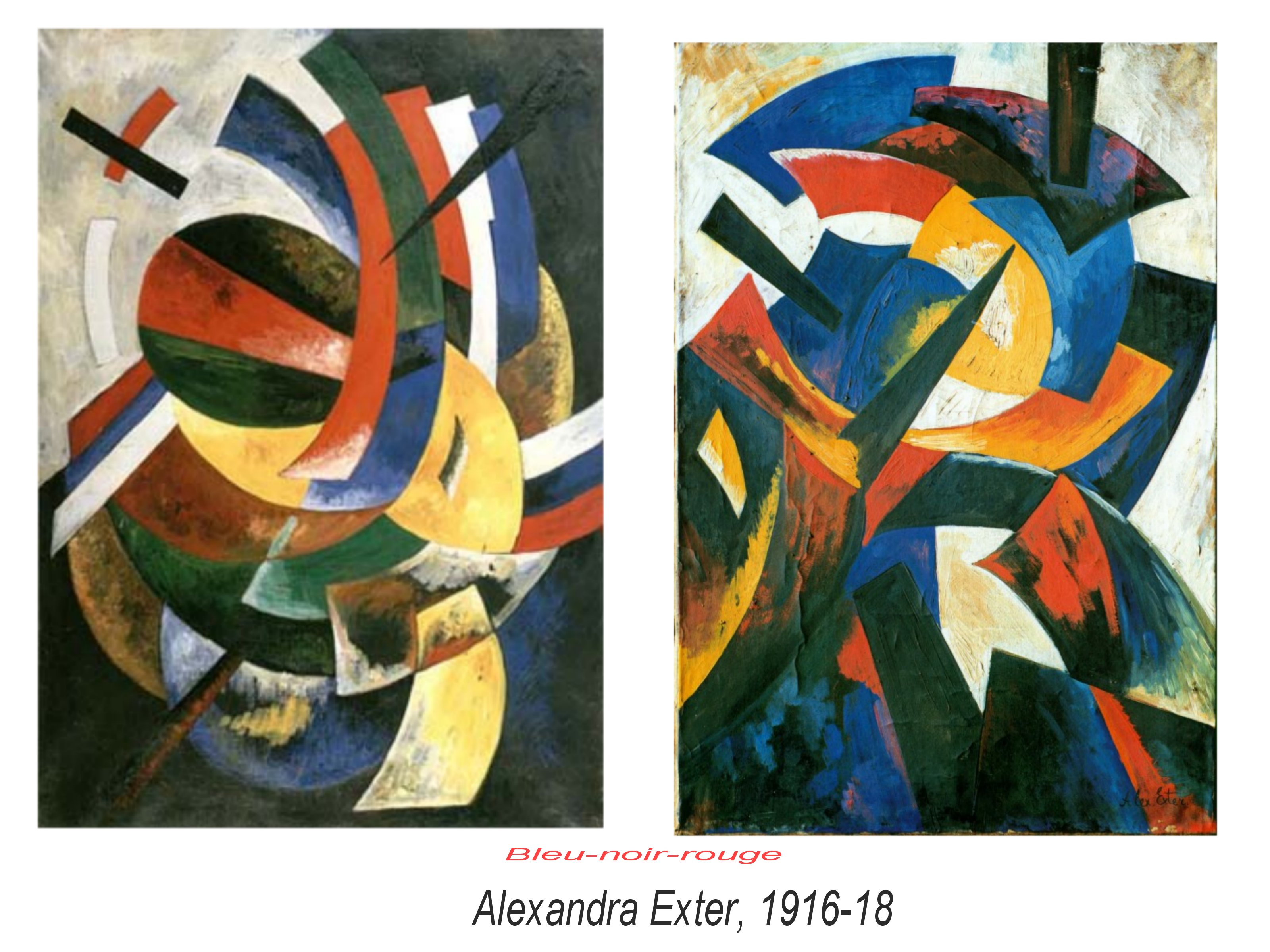 Exter, franchit par contre rapidement le pas de la non-figuration, contemporaine de Kandinsky. L’autonomie des formes, des rythmes et des couleurs, peuvent suffire à proposer des combinaisons, des compositions dynamiques.