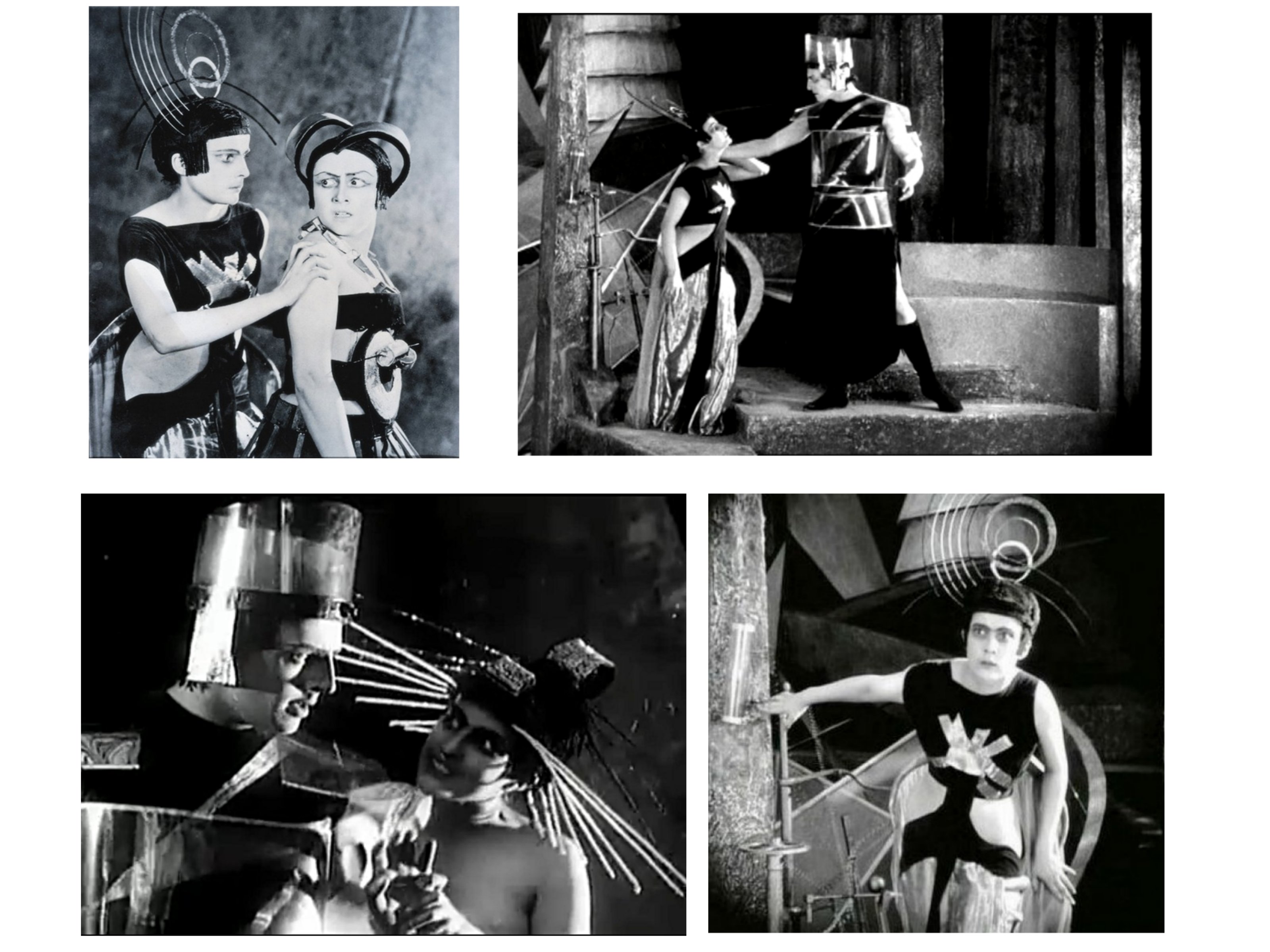 Les costumes et les décors sont conçus par A. Exter ; le cinéma permet totalement de réaliser la problématique cubiste, inaugurée par Cézanne en fait, à savoir d’être partie du décor. Il s’agit bien d’une interaction constante avec l’espace.