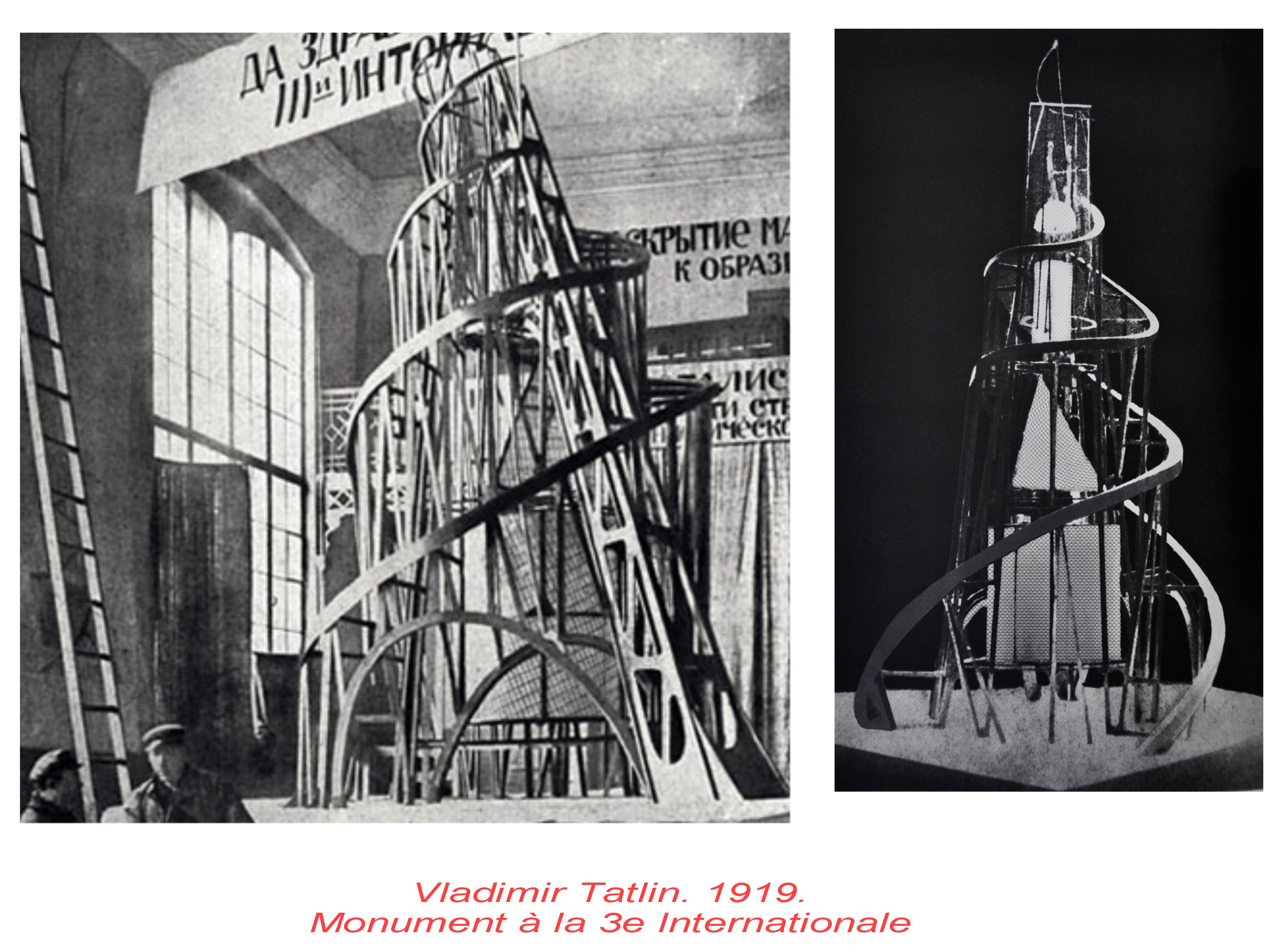 La vision futuriste est aussi traduite dans les projets typographiques et architecturaux, comme ce monument à la nouvelle 3eInternationale communiste; Creuset du nouveau 20e sièvleà venir, dynamique, transparent, lisible, assecssible à tous, combiannt Babel, Pise et Eiffel. Lisibilité des structures, modernité des matériaux. Une esthétique significative.