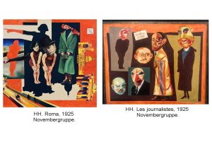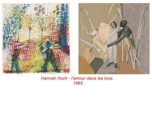 Hannah Hoch est l’une des fondatrices du Mouvement Dada. Elsa Von Freytag Loringhoven.Audacieuse et inventive au cours de sa longue vie. Elle est l’une des initiatrices de l’art du photo-collage. Son art est emblématique des expérimentations et de l’esprit dada, en Allemagne, avant le désastre nazi.