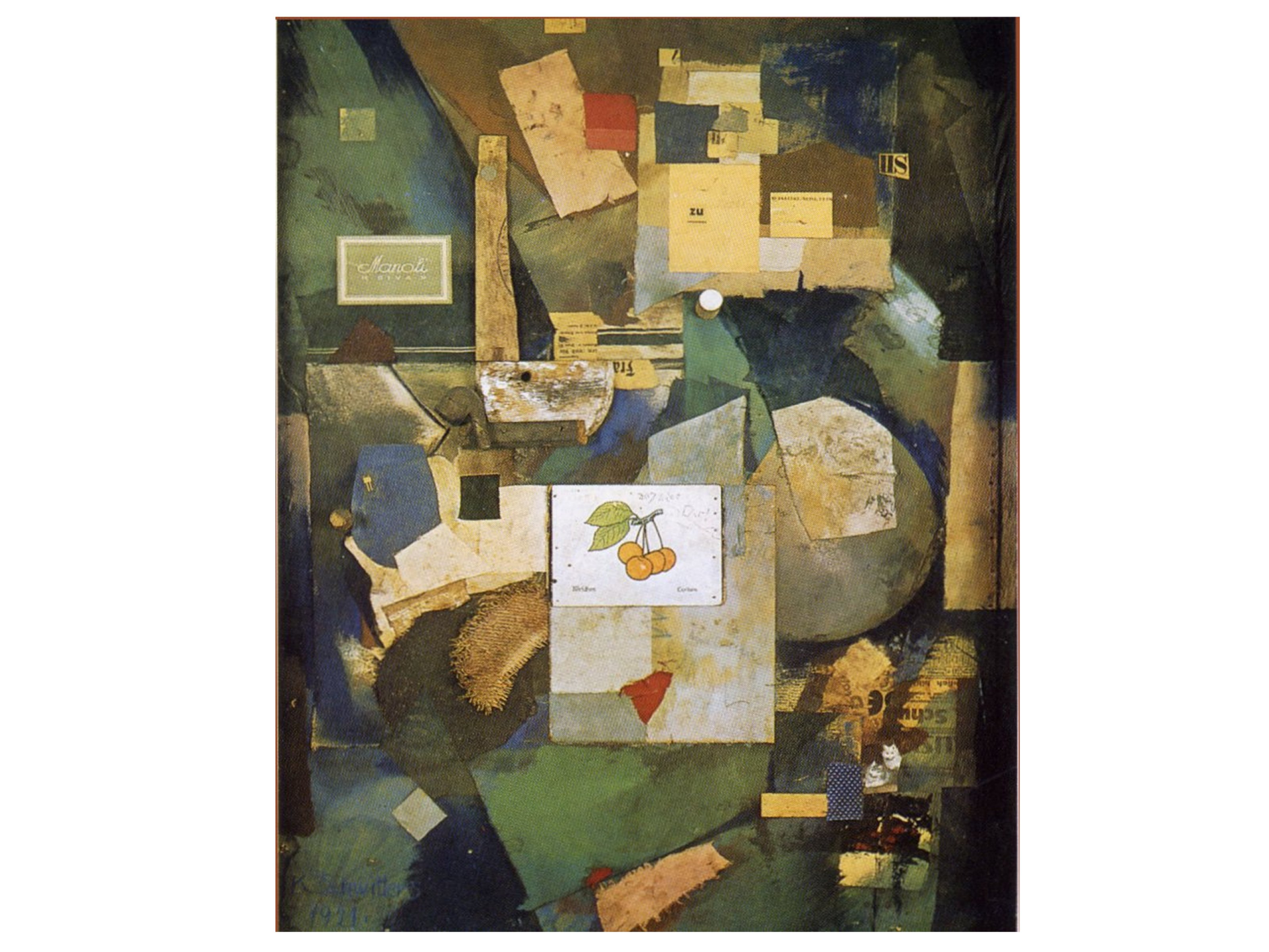Kurt Schwitters, usant d’une pratique proche, intégrant une grande diversité de matériaux glanés, propose des univers plus intimistes. Le désordre et la disparité, sont ordonnés par lui, recycléset harmonisés par les formes et les interventions picturales délicates. Une manière constante chez Schwitters de proposer comme une résilience pour un univers en déréliction. Il se pose comme le réparateur des dégâts contemporains.
