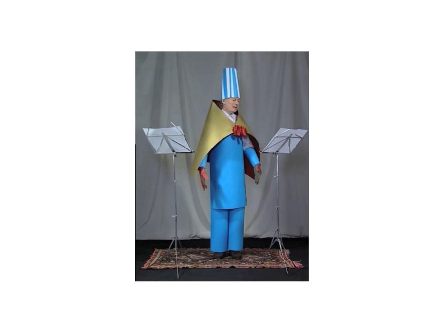 Réédition d’une intervention de Hugo Ball, dont le costume encombrant et comique contraste avec le sérieux et la rigueur affichée de l’artiste scandant des o,nomatopées savamment choisies. Le travail sur le langage premier, bruits, cris, o,omatopées correspond à la déconstruction des formes. Le langage ou plutôt les langues nationales, sont comme des contraintes, des habitudes, des carcans. les sons premiers sont universels et sans frontières..ceci en plein délire nationaliste et sanglant.