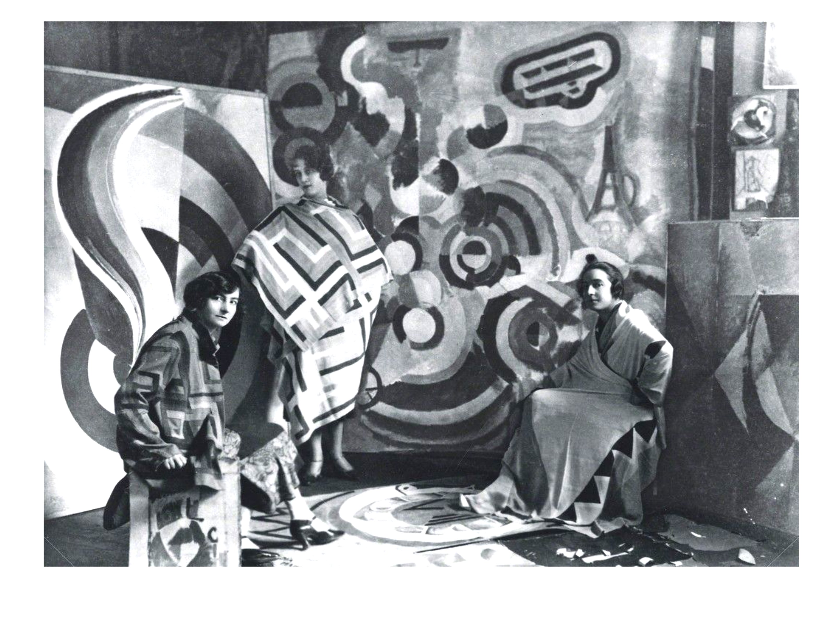 Sonia Delaunay, même génération et même origine de l’Europe centrale, est sans doute la seule, en France à explorer les genres croisés de la peinture, du textile, des vêtements et de la décoration. Ce document témoigne bien de cette continuité sans hiérarchie, reposant la aussi sur une pratique dérivée d’arts dits « mineurs », mais irriguant les grandes compositions, notamment celles de son mari et collaborateur, Robert Delaunay.